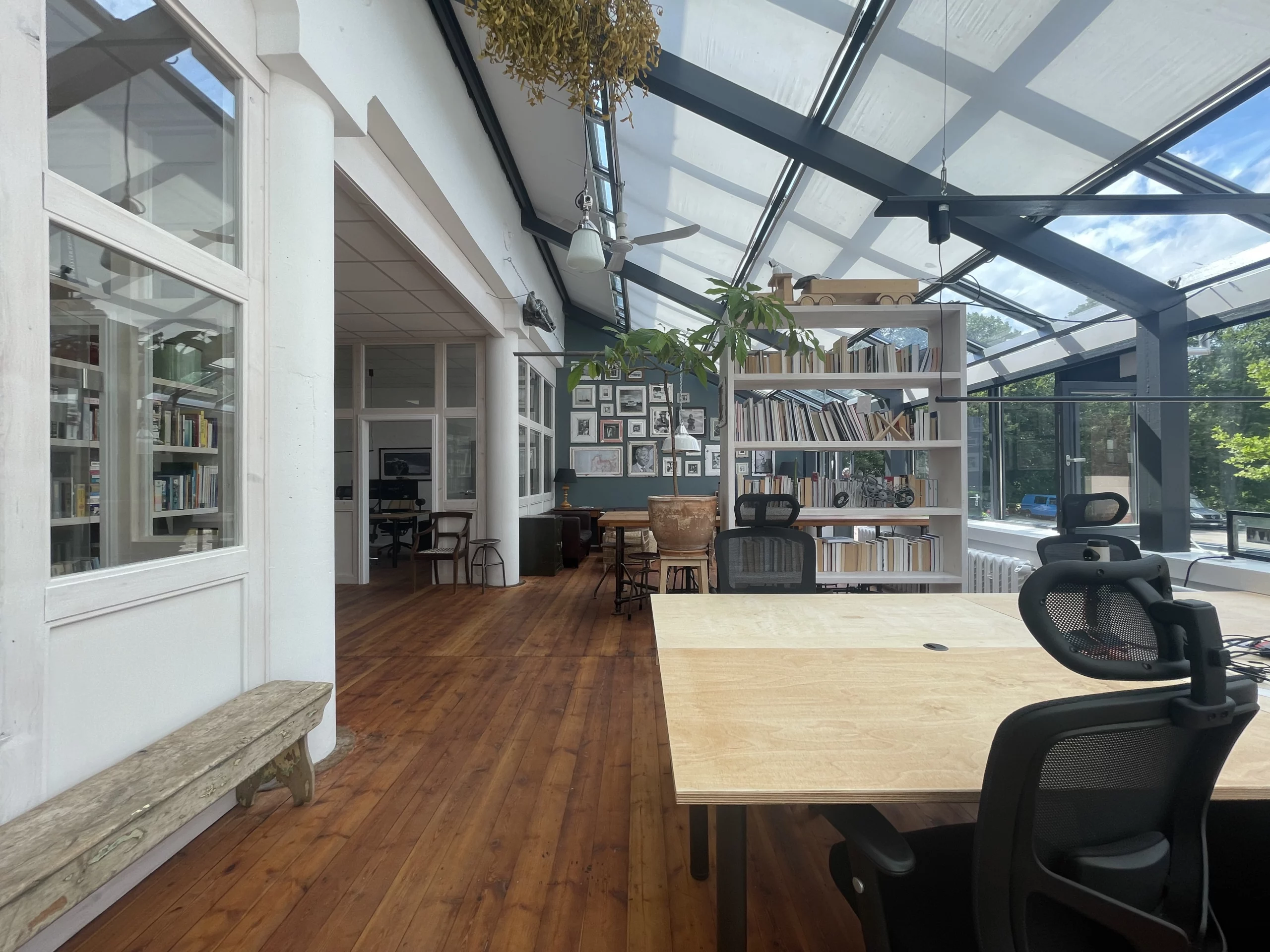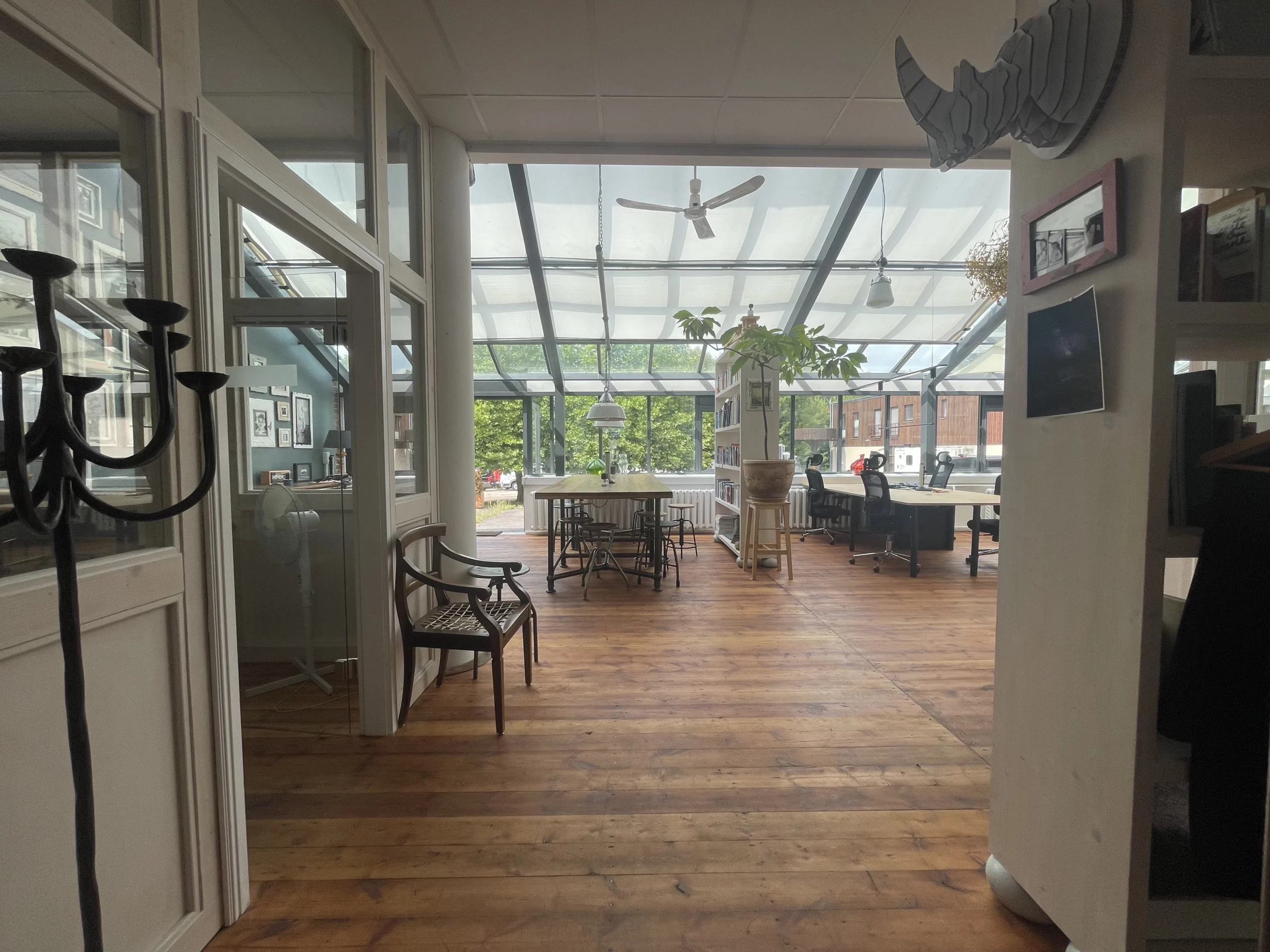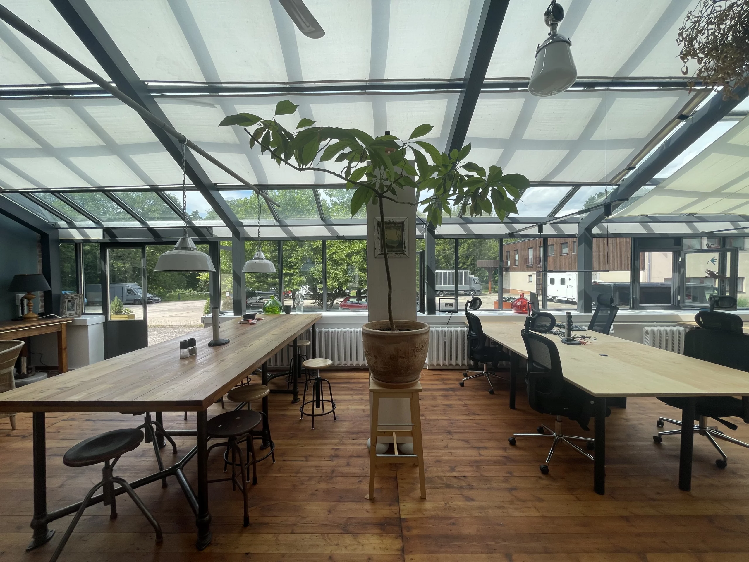 Der Wintergarten sorgt für natürliches Licht den ganzen Tag über. Das hebt die Stimmung und macht produktives Arbeiten angenehmer. Wenn du Ruhe brauchst, findest du ungestörte Ecken. Wenn du praktisch arbeiten möchtest – verpacken, basteln, prototypen – haben wir die entsprechenden Flächen.